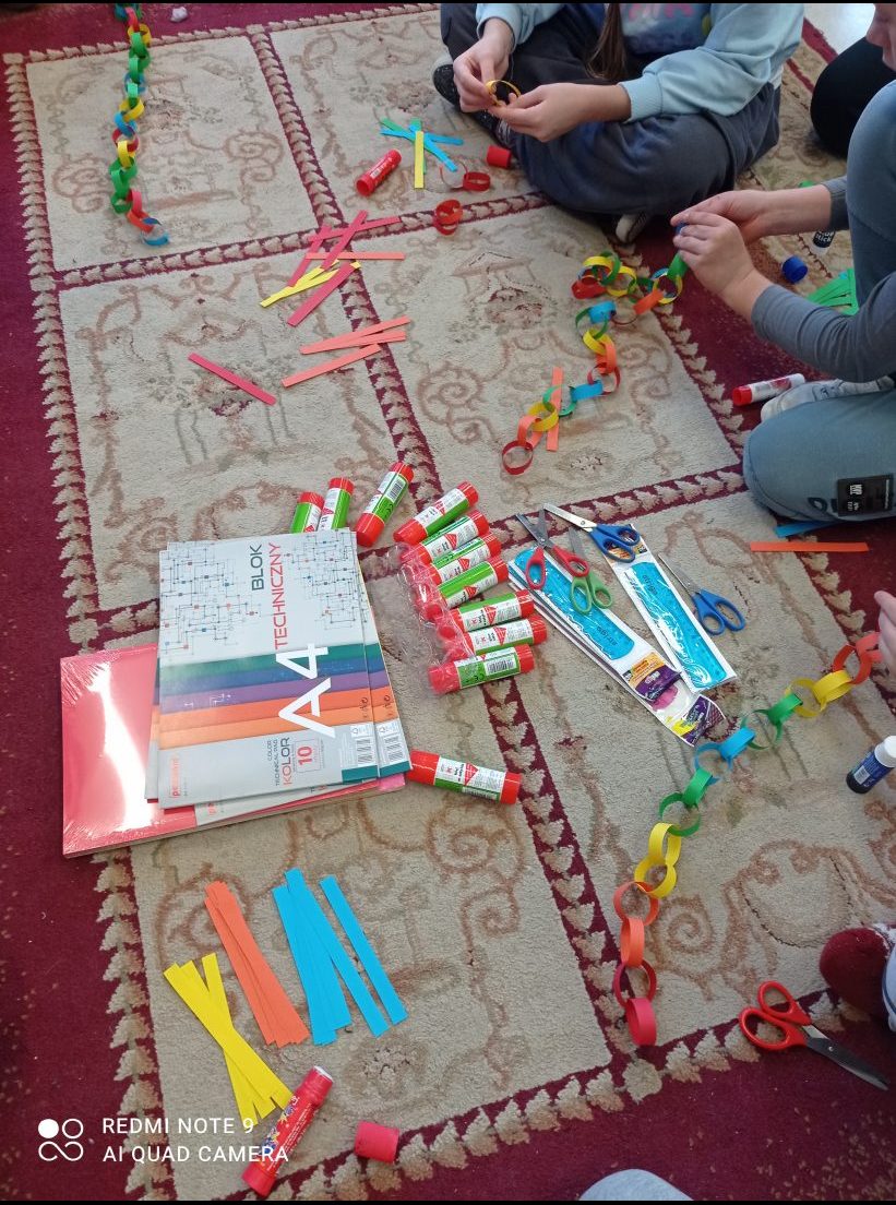 W podziękowaniu uczniowie  klasy III a oraz VIII a wykonali ozdoby choinkowe. Nasze  aniołki, pawie oczka, gwiazdki , koszyczki  i kolorowy łańcuch pięknie przyozdobiły choinkę w siedzibie firmy.