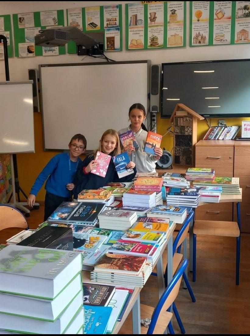 Zakupiliśmy 356 książek, które zasugerowali nam uczniowie w ankiecie, którą przeprowadziliśmy za akceptacją Rada Rodziców.