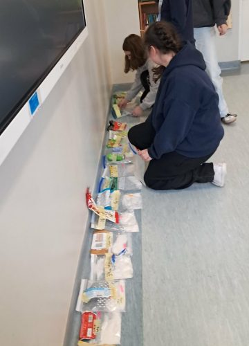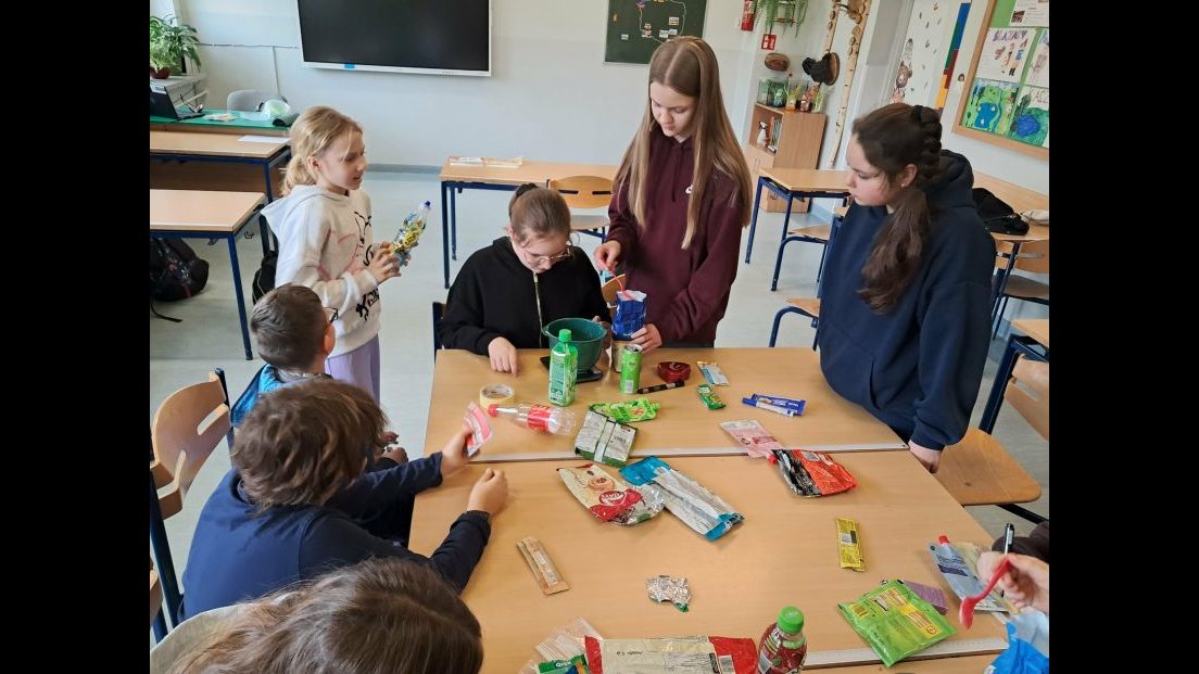 Uczniowie zbierali opakowania po produktach, analizowali ich etykiety oraz korzystali z aplikacji skanującej kody kreskowe, aby sprawdzić skład i wartość odżywczą produktów. Porównywali także zawartość cukru w wybranych napojach i przekąskach oraz wskazywali zdrowsze alternatywy.