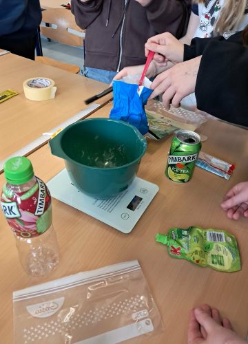 Podczas zajęć „Przyrodniczy punkt widzenia”, realizowanych w ramach projektu „Regionalne wsparcie rozwoju kompetencji kluczowych w pomorskich szkołach”, uczniowie sprawdzali, ile cukru znajduje się w popularnych przekąskach i napojach spożywanych na co dzień.