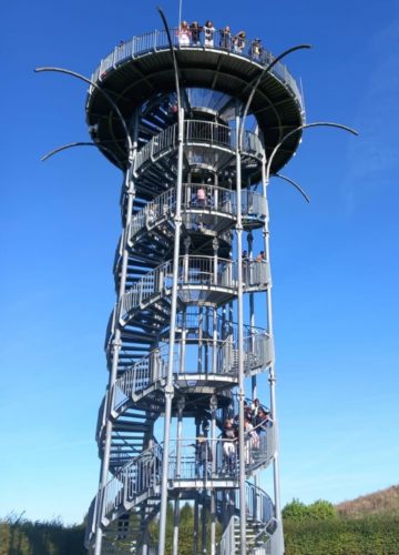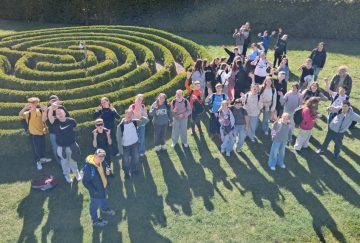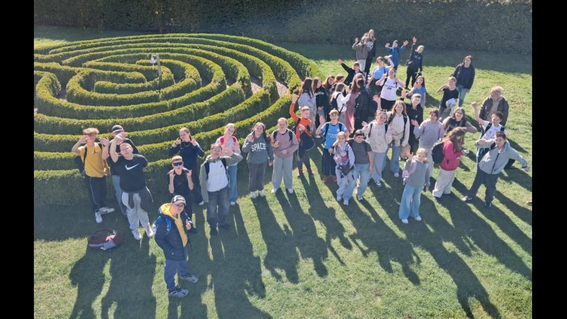 Po tej zielonej podróży udaliśmy się do drugiej części kompleksu – Hortulus Spectabilis, gdzie czekał na nas imponujący labirynt grabowy o długości ponad 3 km. Nie zabrakło emocji, śmiechu i wspólnego poszukiwania wyjścia! Wspięliśmy się także na wieżę widokową w kształcie łańcucha DNA, skąd rozciągał się piękny widok na całą okolicę. Zwiedziliśmy również Świątynię Dumania, Ogród Małego Skrzata oraz Plac Małej Syrenki.