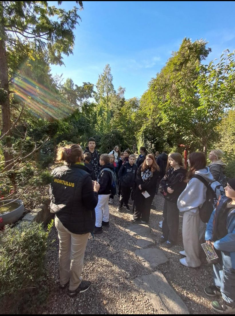W słoneczną sobotę, 27 września 2025 r., grupa 45 uczniów klas 5–8 naszej szkoły wraz z opiekunami, odwiedziła Ogrody Hortulus w Dobrzycy. Wyjazd został zorganizowany w ramach projektu „Regionalne wsparcie rozwoju kompetencji kluczowych w pomorskich szkołach”, a jego uczestnikami byli uczniowie zaangażowani wcześniej w tworzenie przyszkolnego ogródka.